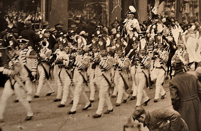 Die größte Bühne Kölns war damals wie heute der Rosenmontagszug. Hermann Schmidt spielte mit seiner Kapelle für die Gesellschaft "Greesberger". Fritz Hannemann spielte derweil mit seinen Musikern im Rosenmontagszug zunächst für die Gesellschaft "Närrische Südwester", ab 1903 dann für die Große Allgemeine KG und ab 1908 schließlich als "Matrosenkapelle" für die Karnevalgesellschaft Sr. Tollität Reichsflotte.