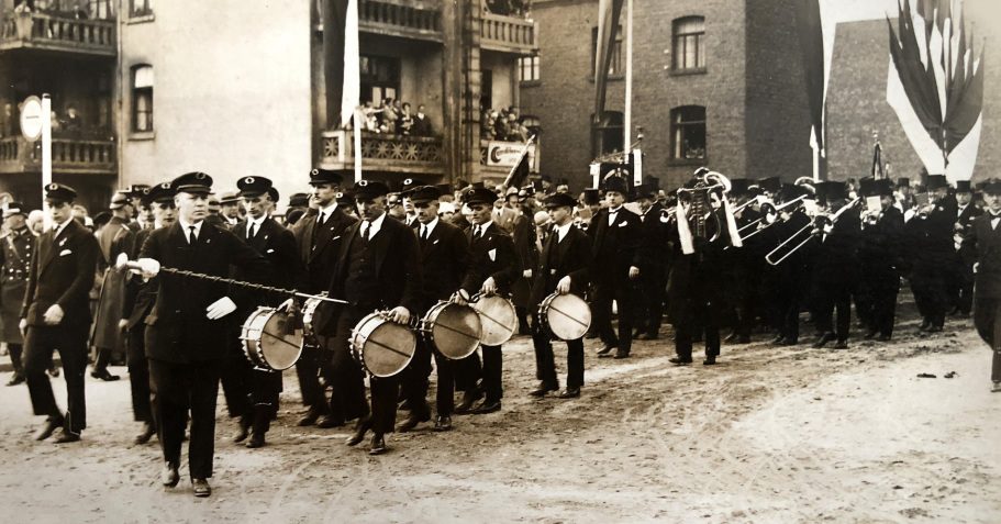 Das Musikkorps des Kölner Garde-Vereins auf dem Neusser Schützenfest, 1929