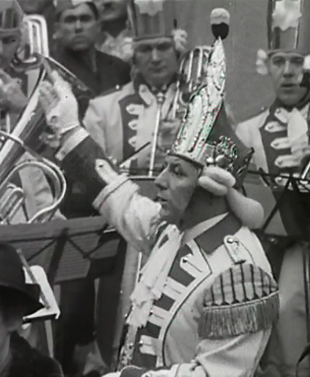 Im November 1936 lockte der Spielfilm "Drei tolle Tage" die Kölner in die Kinos. Der Film, mit Paul Henckels und Jupp Hussels in den Hauptrollen, war mit tatkräftiger Unterstützung der Kölner Karnevalisten im Vorjahr produziert worden und enthielt zahlreiche authentische Aufnahmen vom Rosenmontagszug und einer echten Karnevalssitzung im Gürzenich. Am Vorabend des 11. im 11. fand im Capitol-Theater am Hohenzollernring die Premierenfeier statt, zu der Festkomitee-Präsident Thomas Liessem zahlreiche Ehrengäste begrüßen konnte. Zur Eröffnung der Feier waren auf der Bühne des Capitols die vereinigten Musikkapellen der Roten Funken und der Prinzen-Garde angetreten. Hierüber war in der Zeitung zu lesen: "Die roten Röcke der Funken leuchteten, die weißen Uniformen der Prinzen-Garde strahlten, die Helme gleißten wie Gold und die Schellenbäume funkelten im Bühnenlicht. Und dann hob der Musikdirektor der Funken den Stab und die langentbehrten Klänge der Karnevalsmärsche und -lieder brausten durch den Saal. Denn Karnevalsmusik ist nichts für verzärtelte Nerven, der Paukenschläger schont das Kalbfell nicht im geringsten, es schmettert und dröhnt und reißt alle zum Mitsingen hin."