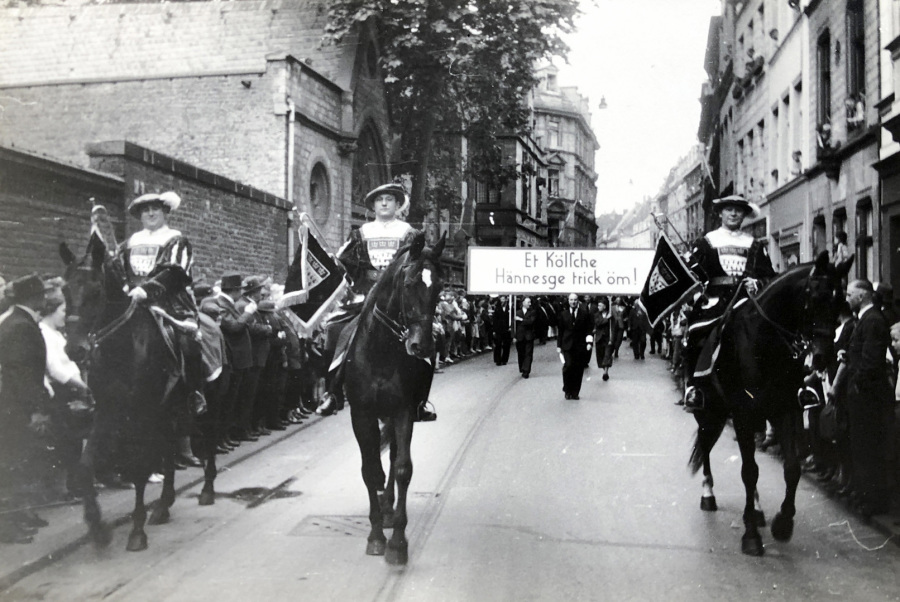Am 29. Juli 1938 schlängelte sich ein bemerkenswerter Zug durch die Straßen der Kölner Altstadt. Das Hänneschen-Theater zog von seinem alten Theaterbau im Rubenshaus an der Sternengasse in eine neue Spielstätte am Eisenmarkt um. Hans Molitor, der Verwaltungsdirektor der städtischen Bühnen, inszenierte diesen Umzug als öffentlichkeitswirksames Spektakel in Form eines bunten Festzuges, bei denen die Figuren des Hänneschen-Theaters lebendig dargestellt wurden. Die Kölner Musikkapellen, ebenfalls verkleidet als kölsche Originale, begleiteten das Hänneschen-Ensemble bei seinem Umzug mit viel kölscher Blasmusik, vorneweg die berittenen Fanfarenbläser des Garde-Vereins als stadtkölnische Herolde. Selbst die Roten Funken ließen es sich nicht nehmen, mitten im Sommer an diesem Festzug teilzunehmen. Es war ein großes kölsches Fest, bei dem tausende Zuschauer den Zugweg säumten und das in einem wohltuenden Kontrast zu den sonst üblichen Aufmärschen der braunen Machthaber stand.